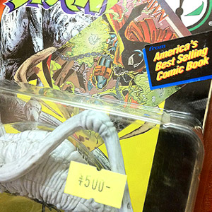 大体つながりのある人はそこで近況報告できちゃう。 買ったオモチャもiPhoneで写真を撮って→即アップロードで皆にプレビューさ! 時代は楽な方、楽な方、へと流れております→ブログ放置してごめんなさい。 というワケで、昨日(10日)はツイッターでお世話になっている 日本一のHE-MANコレクターZEDさんにお誘いいただき中野方面トイ行脚。 高円寺2000TOYSさんから始まり、 塩ビをクリエイトするズーモスの佐武雷三さんと中野ブロードウェイで合流。 ブロードウェイ脇の飲み屋に移動して終電近くになるまで ディープな楽しい会話は留まる事を知りませんでした。 今でこそ集めてる物は皆それぞれ違うけど、トイビズとスポーンは通る道なんだなぁ(笑) 【オマケ】 高ぇー!(笑)といいつつ購入したバイオレーター(クロミウムカード)と その数時間後に見つけた激ヤバ即ゲット級のフィギュア。 当時を知ってる者には信じられない値段だと思うんだけど... (つд⊂)ゴシゴシ ※以下、画像クリックで拡大 共に個人巡回だったら見落としてた商品だと思う。 いつもとは違う環境、違う仲間と回るだけで 長年通っているブロードウェイも全然違うものに見えてくるから面白いですね。 そういった意味でも、今回はとても有意義な日でした! 一度と言わず、二度三度とよろしくお願いします(^^)