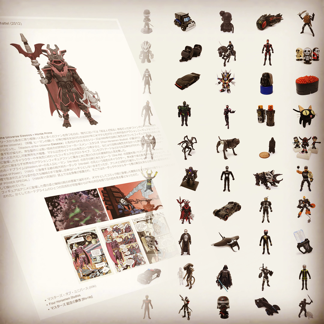黒い色をしたオモチャばかりを集めた「黒いTOY」コレクション